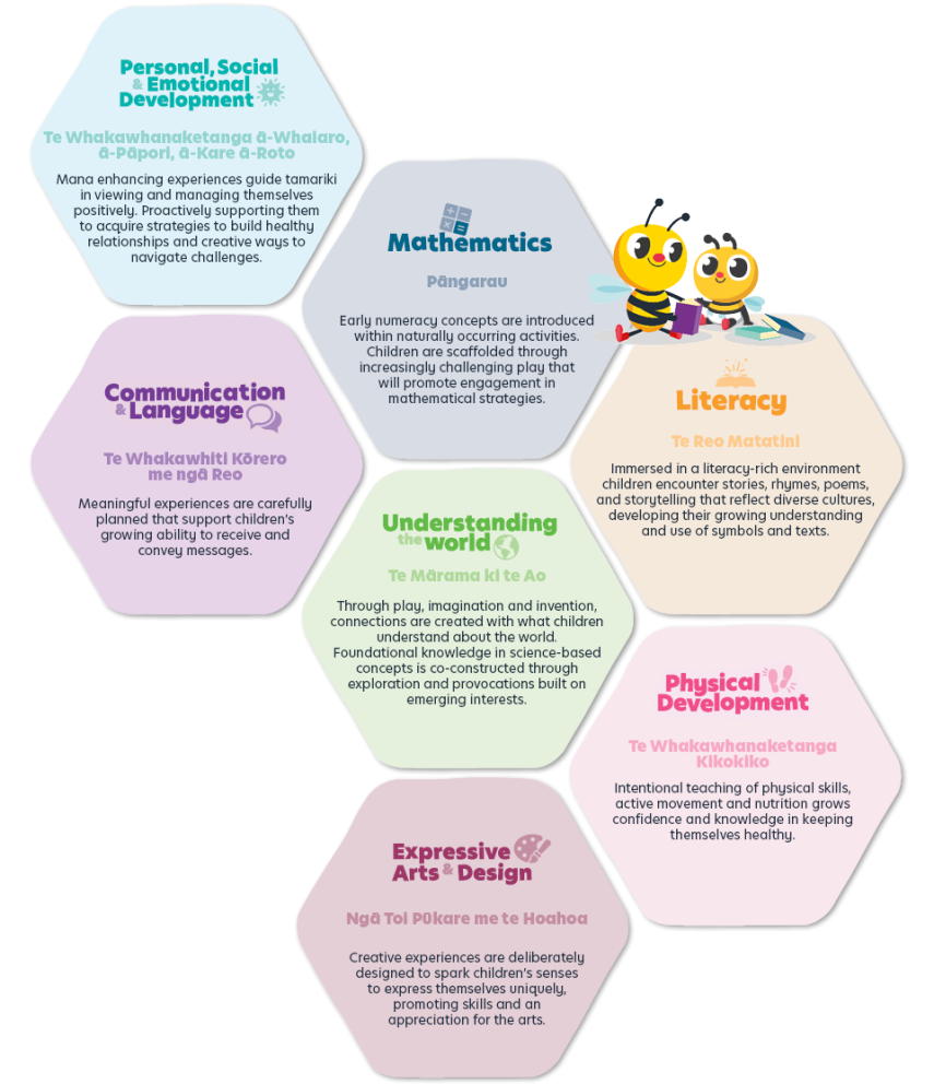 Bee Curious - our Busy Bees Curriculum Framework - has been created to guide and inspire kaiako in supporting tamariki through rich, interconnected learning experiences. Built on the strong foundation of Te Whāriki, it reflects the principles of Aotearoa New Zealand’s early childhood curriculum and the aspirations we hold for our children as they grow.